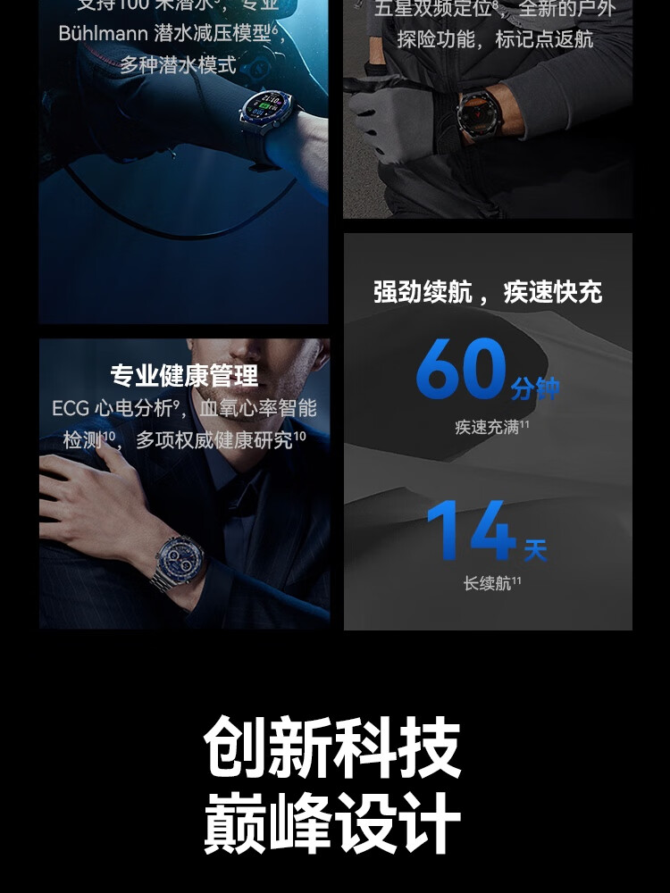 商品名称:华为HUAWEI WATCH Ultimate 黑色丁腈橡胶 48.5mm表盘 双向北斗卫星消息 华为百米深潜运动智能手表 户外探险