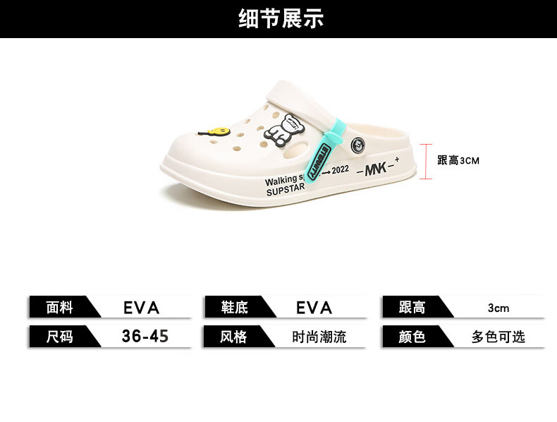 商品名称:俞兆林(YUZHAOLIN)洞洞鞋男女情侣沙滩鞋厚底增高凉拖鞋外穿 YB260 白色女 38/39