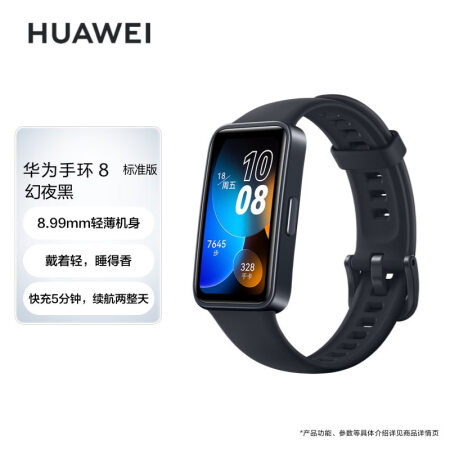 华为HUAWEI手环8 标准版 幻夜黑 华为运动手环 智能手环 8.99毫米轻薄设计 心率、血氧、睡眠监测 磁吸快充